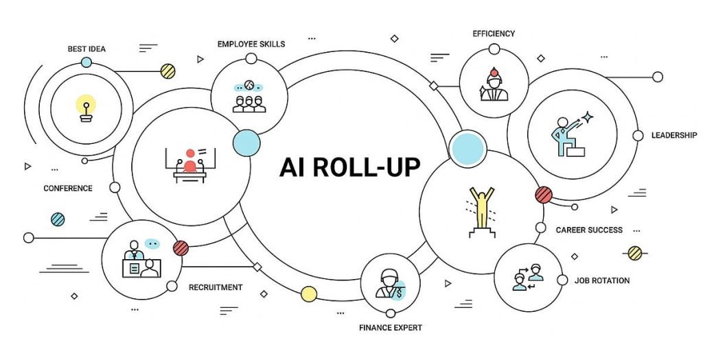 전통적인 롤업(roll-up)은 산재한 소형 회사를 묶어 하나의 대형 사업체로 통합하는 전략이다. 하지만 AI-driven 롤업은 ‘핵심 가치 창출자’가 사람이 아니라 AI라는 점에서 완전히 다르다.
